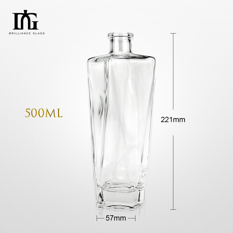 Ромбическое стекло 500 мл виски на заказ квадратная стеклянная бутылка водка текила джин с пробкой
